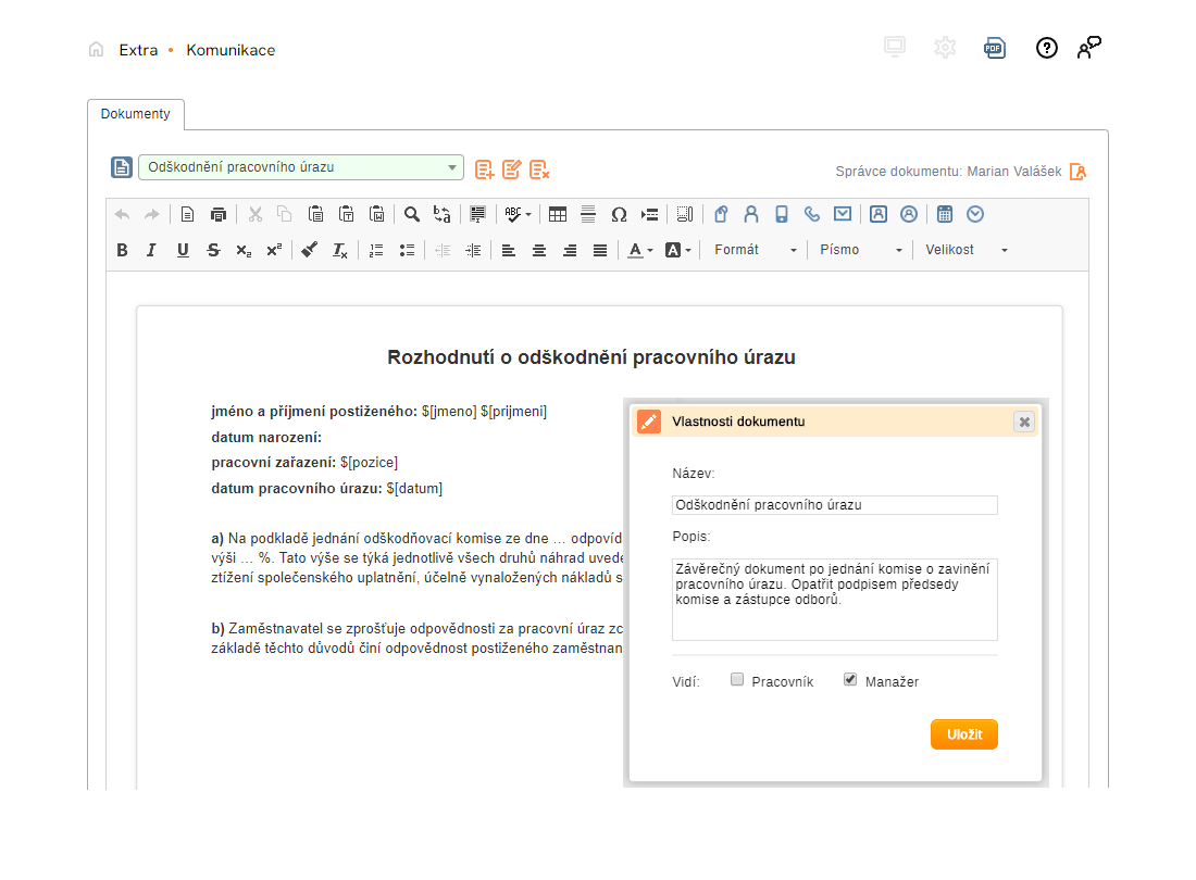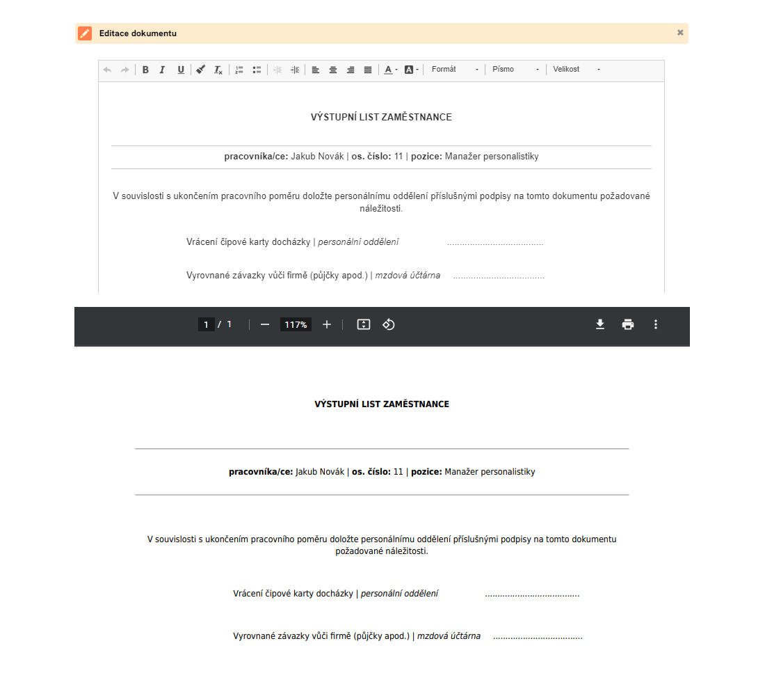V této sekci vytvářejí uživatelé s rolí Personalista dokumenty s daty podřízených pracovníků pro manažery oddělení nebo veřejné dokumenty pro použití všemi pracovníky firmy.